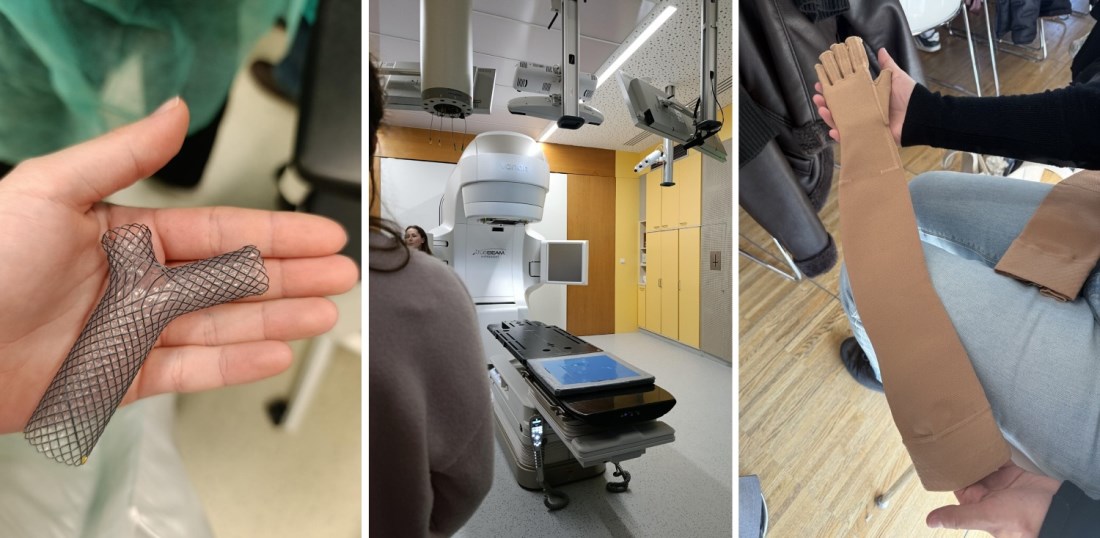 V rámci exkurze navštívili Centrum pneumologie a intervenční bronchologie, kde se žáci seznámili s pracovištěm a možnostmi moderní diagnostiky a léčby onemocnění dýchacích cest. Velkým zážitkem byla možnost pozorovat reálné provedení bronchoskopie a prohlédnout si či doslova „osahat“ instrumentárium. Lépe pochopit terapii onkologických onemocnění pomohla prohlídka lineárního urychlovače, který se využívá při radioterapii onkologických onemocnění. Součástí programu byla také odborná přednáška věnovaná kompenzačním pomůckám pro onkologicky nemocné pacienty, zejména pak epitézám, které jsou pro pacientky po odstranění prsu významné pro usnadnění návratu do běžného života. V další části programu následovala edukace zaměřená na samovyšetření prsu a varlat, která zdůraznila význam prevence a včasného odhalení nádorových onemocnění.
